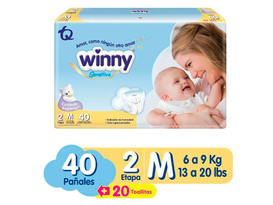 Bebe, Etapa 2 - Talla M / De 6 a 9 Kg, Pañales y Toallitas Húmedas, Winny